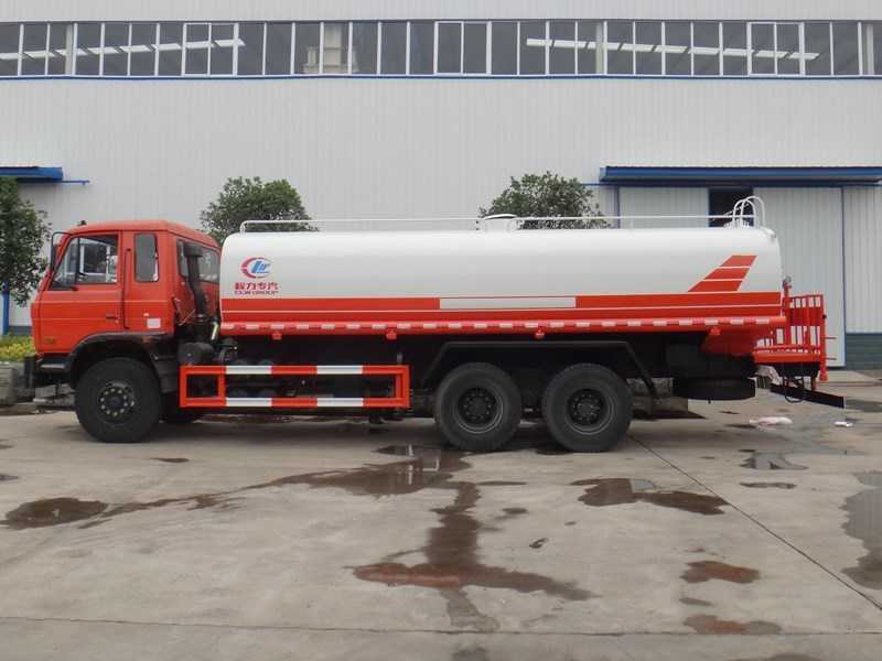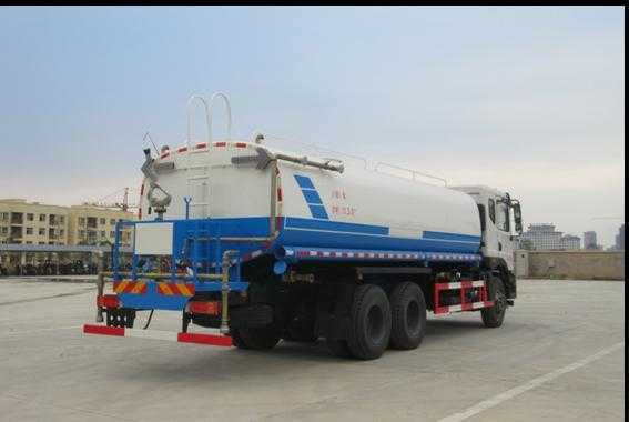 改裝配置:罐體采用5mm厚武鋼專用容積板制作,實際容積20立方,大功率專用灑水泵,采用國際領先技術、使用方便快捷,比同類灑水泵壓力大、吸程遠、使用壽命長,克服其他灑水泵易被雜物纏住、壓力小、吸水慢的缺點;前沖(噴)后灑,帶側噴,罐體后帶工作臺,平臺上安裝綠化灑水炮。灑水炮可全方位旋轉,可連續調成直沖狀、大雨、小雨、毛毛雨;罐體有效物理容積大,一次作業時間長,無須頻繁加水,工作效率高;電、液、氣集中控制,整車具有良好的人機操作界面,操作方便靈活,駕駛員可在駕駛室內完成各種動作的操作,操作安全、舒適;罐體焊接全部采用CO2氣體保護自動焊接,焊機質量可靠,外型美觀,罐體的截面形狀為橢圓形,內部制造成多倉室結構,各個倉室用隔板(防波板)隔開。隔板與罐體之間采用焊接剛性連接形式;.罐體頂部開有人孔。人孔既可以作為工作人員進行罐內檢修的進出口,也可以作為加水孔用于向罐內加注水。用戶可選裝消防大功率消防水泵、應急時可做消防灑水車使用。