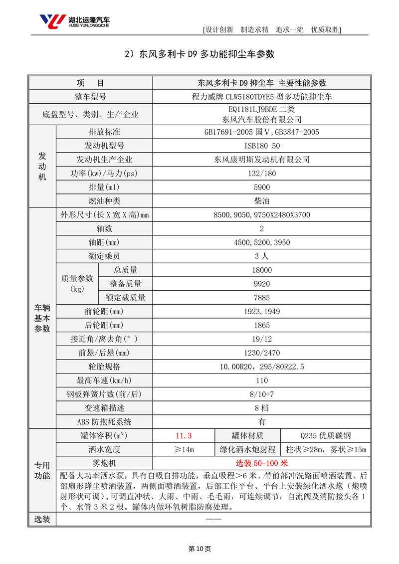 10-12噸方罐50-80米東風大多利卡抑塵車